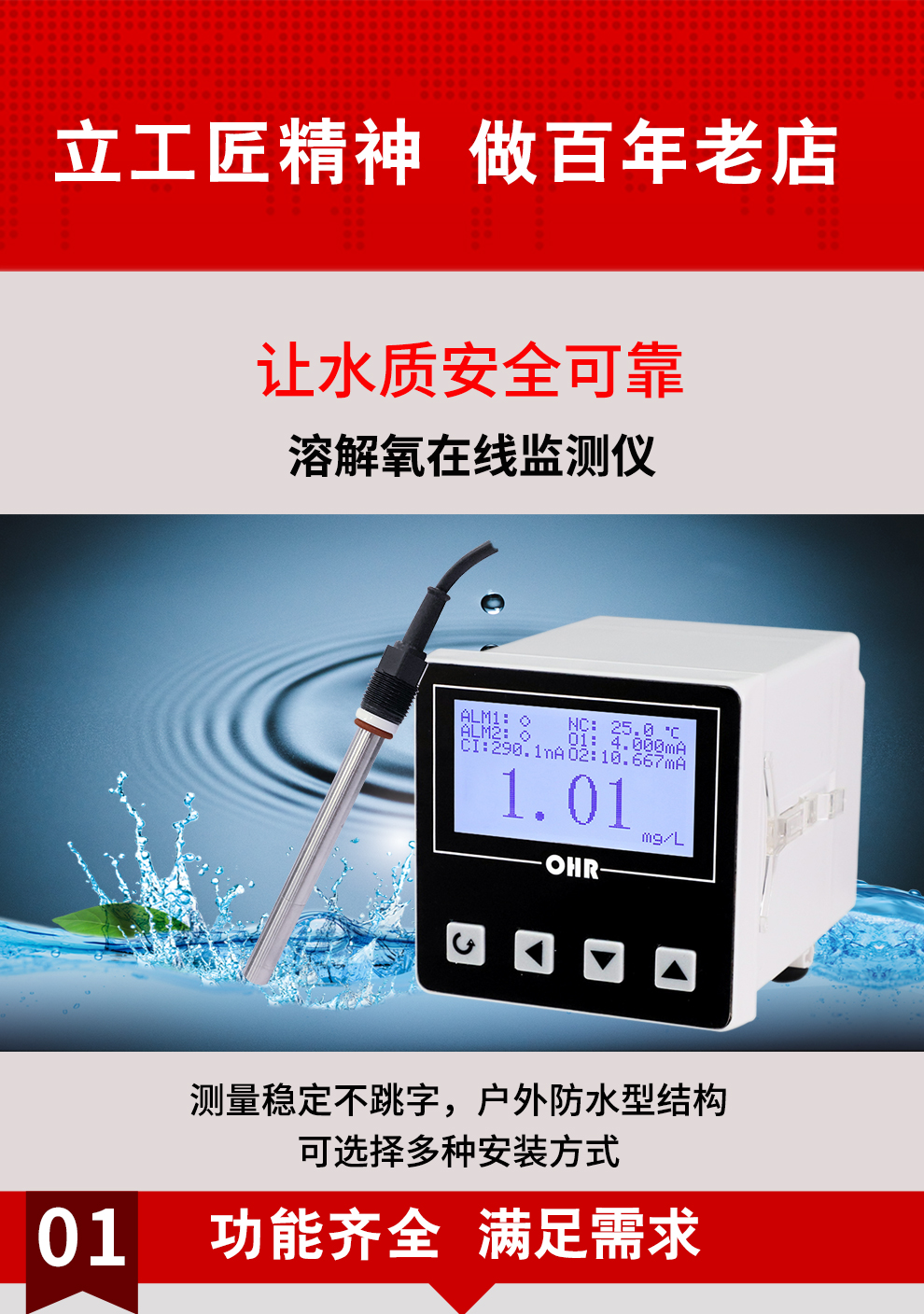 溶解氧測(cè)定儀測(cè)量穩(wěn)定不跳字,輸入采用膜法測(cè)量,可選擇盤(pán)裝、壁掛、圓管安裝