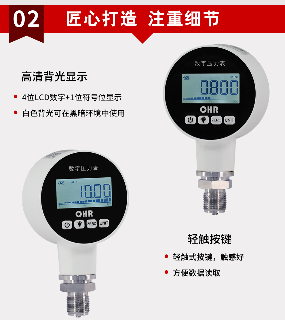 數(shù)字壓力表 數(shù)顯壓力表 功耗低、響應(yīng)快、過(guò)載能力強(qiáng)、漂移小、精度可達(dá)0.2%