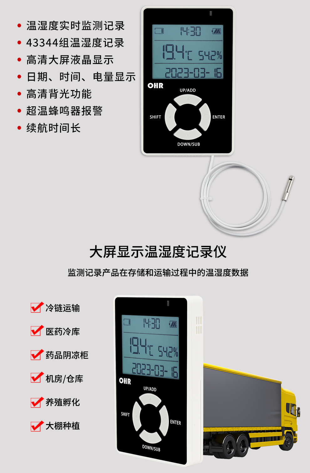 便攜式溫濕度記錄儀對環(huán)境的溫濕度進(jìn)行實時監(jiān)測、報警與記錄。