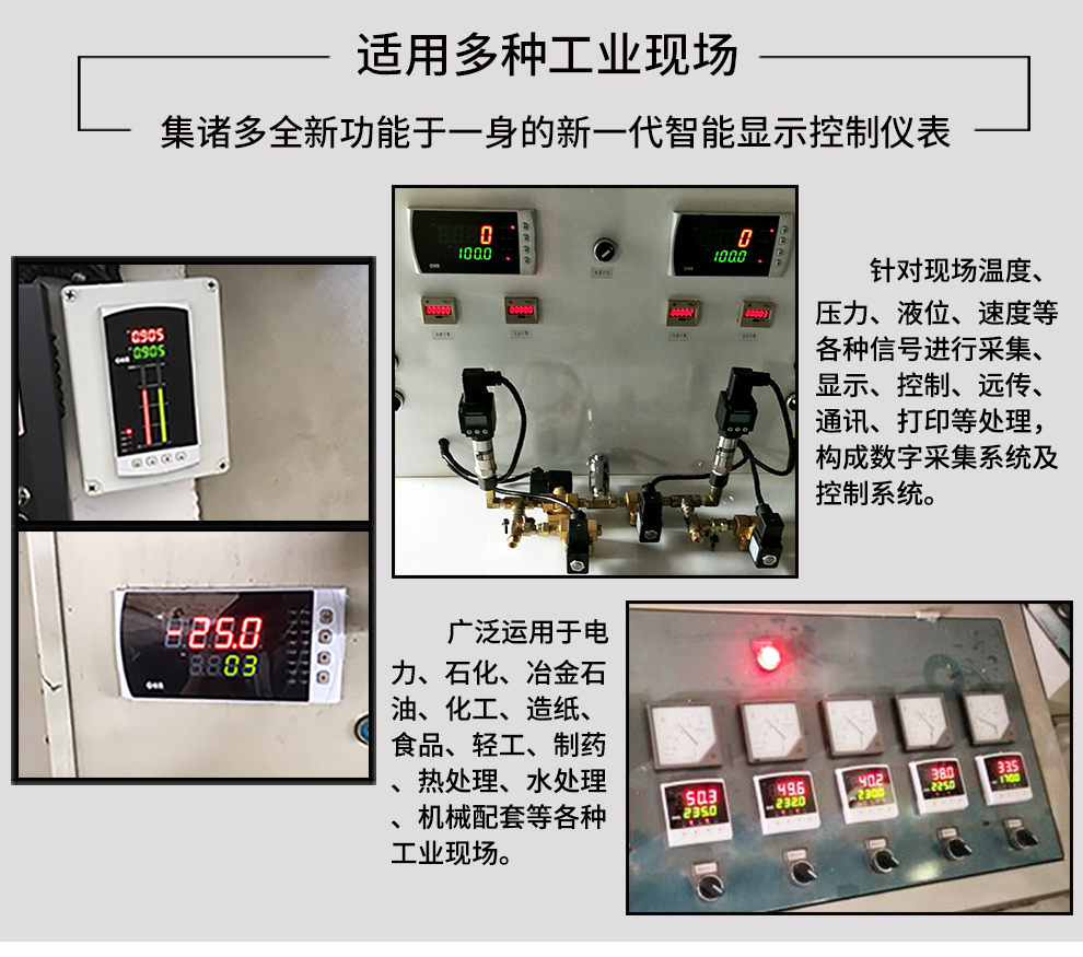 四回路測量顯示控制儀針對現(xiàn)場溫度、壓力、液位、速度等各種信號(hào)進(jìn)行采集、顯示、控制、遠(yuǎn)傳、通訊、 打印等處理,構(gòu)成數(shù)字采集系統(tǒng)及控制系統(tǒng)。