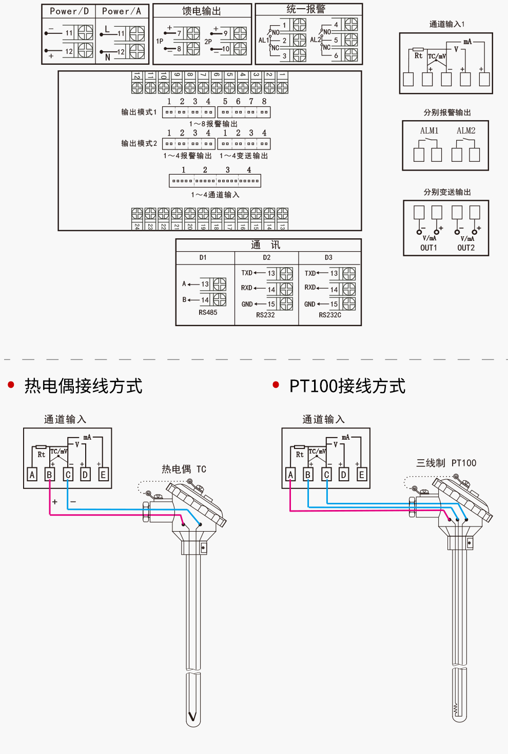 答:24V配電是給傳感器供電的,一般如果是溫度信號(hào)(除溫度變送器外)直接輸入的話,就不要這個(gè)24V配電,主要是針對變送器、流量計(jì),如壓力傳感器,溫度變送器,電磁、渦街流量計(jì)等??刂祁悆x表的配電是指:專為2線制變送器供電的電源,通常+端為24V輸出端,-端為信號(hào)采集端;其24V的-端與信號(hào)采集的-端在儀表內(nèi)部短接。饋電:饋電與輸入信號(hào)之間完全隔離,4線制傳感器普遍要求輸出與電源之間需要隔離,所以使用饋電連接;饋電的24V-端也可與輸入信號(hào)的負(fù)端短接實(shí)現(xiàn)與2、3線制變送器的連接。虹潤公司儀表的配電與饋電的負(fù)載能力當(dāng)訂的為同款儀表,其負(fù)載能力相同,一般為30mA。