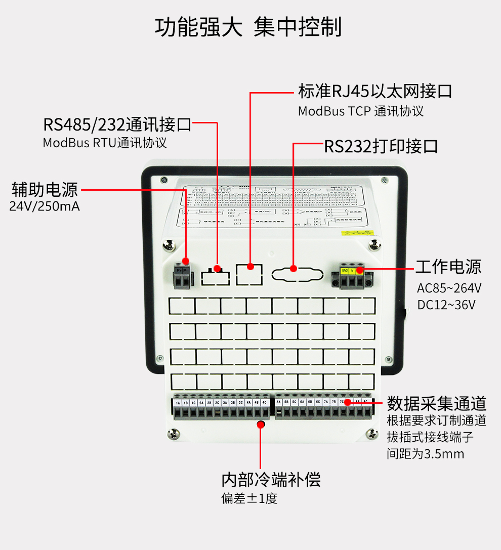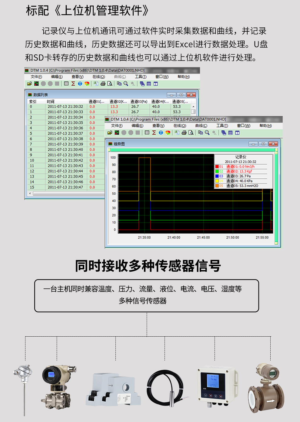 彩色無紙記錄儀/溫度記錄儀用新型大規(guī)模集成電路,對輸入、輸出、電源、信號采取可靠保護(hù)和強(qiáng)抗干擾設(shè)計(jì)。48路萬能輸入??蓭S232/485通訊接口,以太網(wǎng)接口,微型打印機(jī)接口和USB接口,SD卡插座;可提供傳感器配電;具有強(qiáng)大的顯示功能,實(shí)時(shí)曲線顯示,歷史曲線追憶,棒圖顯示等。