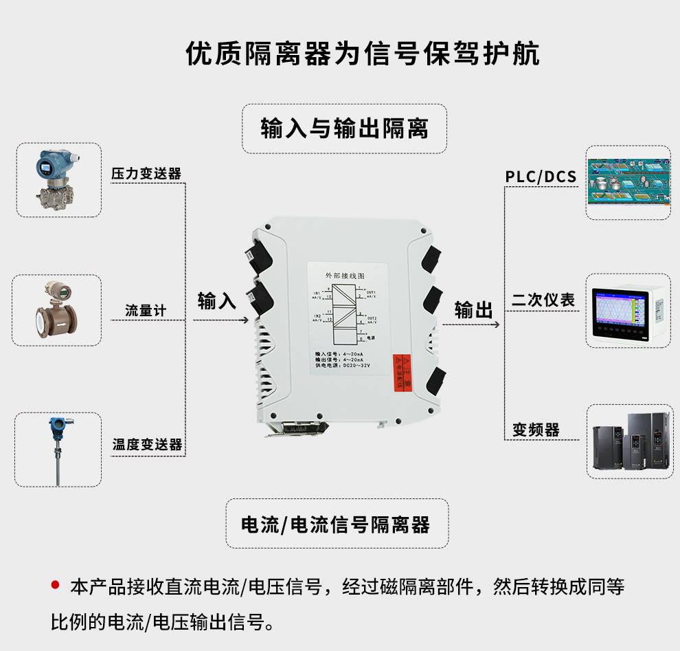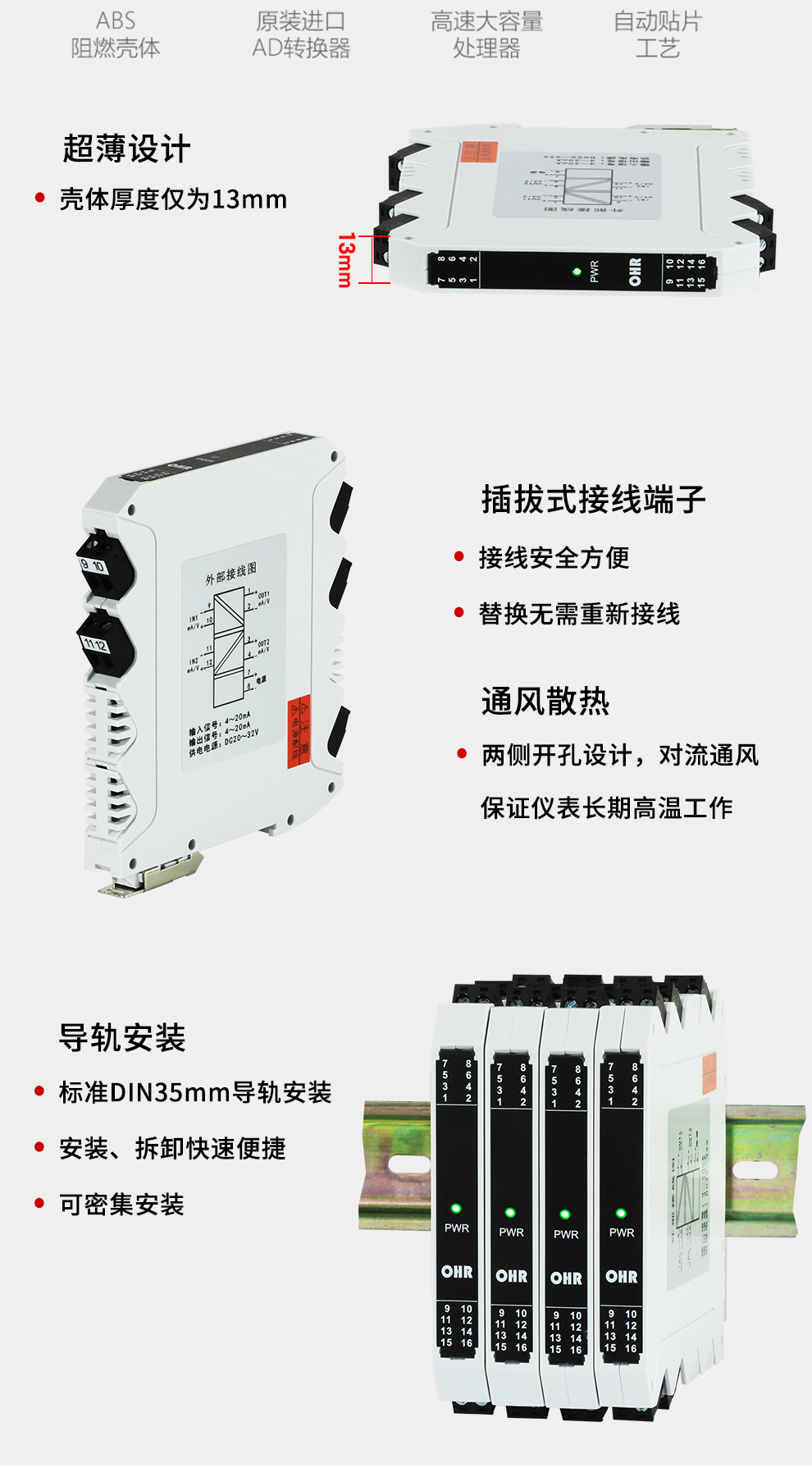 OHR-M21系列電壓/電流隔離器將直流電壓或電流信號經(jīng)過隔離傳送,轉(zhuǎn)換成所需的信號給其它儀表??梢耘c單元組合儀表及DCS、PLC等系統(tǒng)配套使用,給予現(xiàn)場儀表信號隔離、信號轉(zhuǎn)換、信號分配、信號處理等,從而提高工業(yè)生產(chǎn)過程自動控制系統(tǒng)的抗干擾能力,保證系統(tǒng)的穩(wěn)定性和可靠性。
